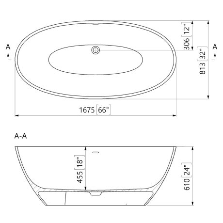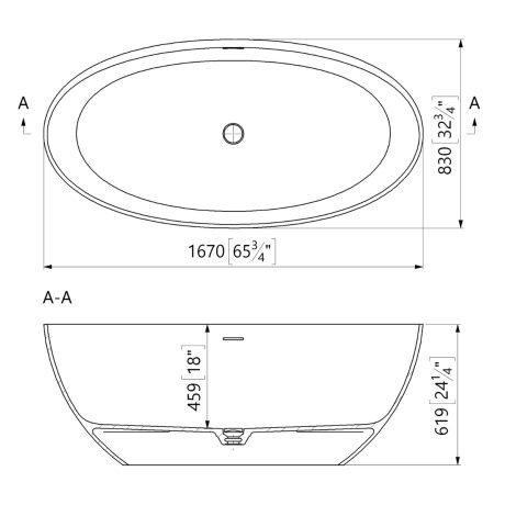 Cadă freestanding ovală din compozit mineral BT 0539 1670 INT