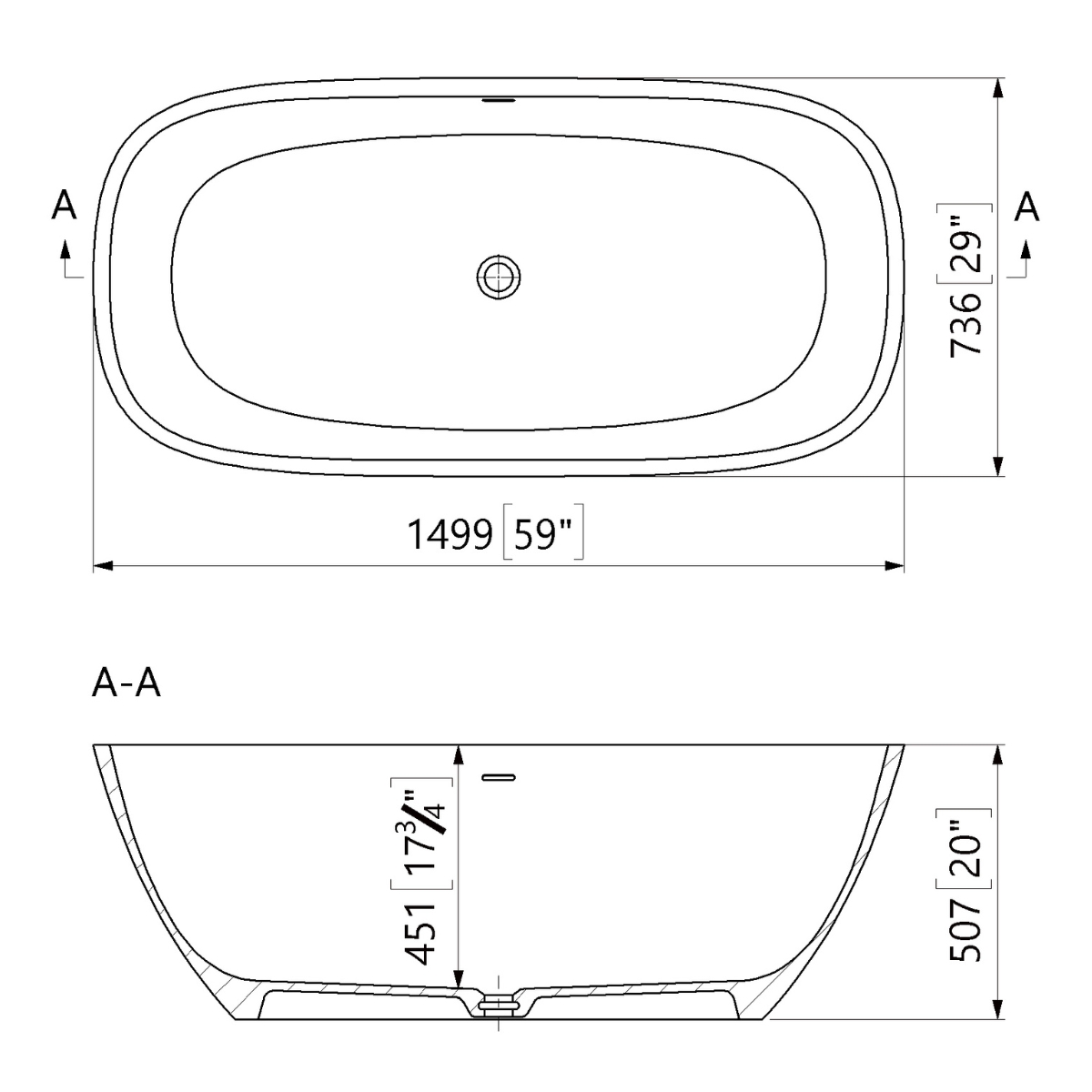 Realizată din compozit mineral, cada asigură o suprafață solidă, plăcută la atingere și ușor de întreținut. Materialul contribuie la menținerea temperaturii apei pentru mai mult timp, sporind confortul în utilizare. Dimensiunile de 1500 × 736 × 507 mm și volumul de 241 litri sunt optimizate pentru utilizare zilnică, fără a ocupa excesiv spațiul băii.